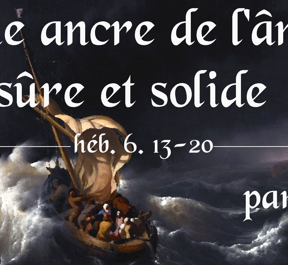 Hebreux 6:17-20 C’est pourquoi Dieu, voulant montrer avec plus d’évidence aux héritiers de la promesse l’immutabilité de sa résolution, intervint par un serment, 18 afin que, par deux choses immuables, dans lesquelles il est impossible que Dieu mente, nous trouvions un puissant encouragement, nous dont le seul refuge a été de saisir l’espérance qui nous était proposée. 19 Cette espérance, nous la possédons comme une ancre de l’âme, sûre et solide; elle pénètre au delà du voile, 20 là où Jésus est entré pour nous comme précurseur, ayant été fait souverain sacrificateur pour toujours, selon l’ordre de Melchisédek.