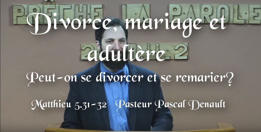 Le Seigneur nous a enseigné à ne pas convoiter l’époux de notre prochain (Mt 5.26-30), maintenant il nous enseigne à rester mariés à notre propre époux (Mt 5.31-32). Après avoir vu la source de l’adultère, il est nécessaire de considérer là où l’adultère mène souvent : le divorce. Dans ce message nous tenterons de comprendre l’enseignement de Jésus concernant le divorce et le remariage. Est-il parfois licite de divorcer? Le remariage est-il toujours un adultère? Nous répondrons à ces questions délicates à la lumière des saintes Écritures.