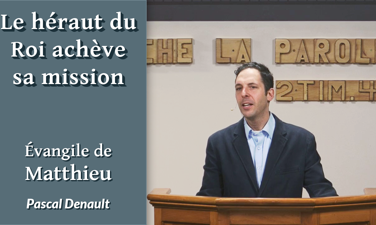 DESCRIPTION : Le rejet de Jésus à Nazareth se poursuit par le rejet et l’exécution de son héraut Jean-Baptiste. Dans l’exposition de ce texte, nous examinerons successivement Hérode et Jean-Baptiste en démontrant comment chacun caractérise la rébellion du pécheur contre Dieu (Hérode) et la fidélité du croyant envers le Seigneur (Jean-Baptiste). Nous situerons le contexte historique de ces événements et verrons comment ils s’inscrivent dans le plan divin concernant la mission du Messie.